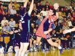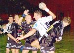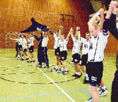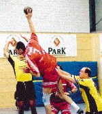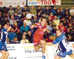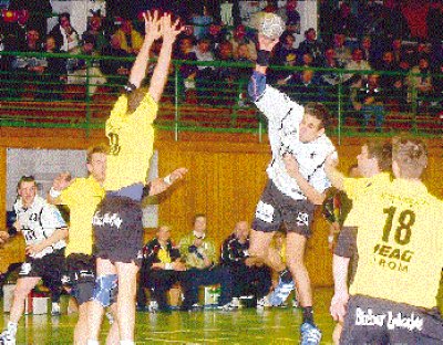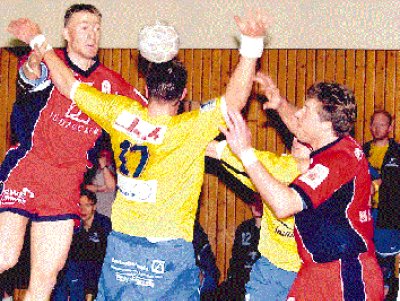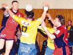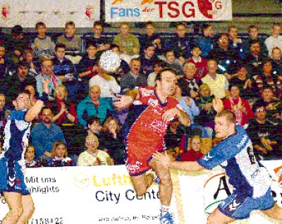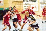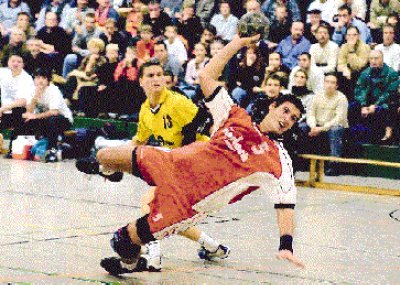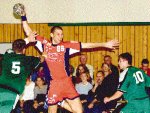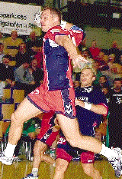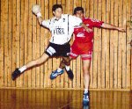 damit ihren Platz in der Spitzengruppe. Gleich von Beginn an demonstrierte die Biegler-Sieben Stärke. Besonders der Schwede Andreas Agerborn war in der Anfangsphase hellwach, erzielte vier der ersten sechs Tore. Auch auf der Höhe Kapitän Steffen Weiß, der nach Vorlage von Thorsten Laubscher am Kreis zwei Mal in die Maschen traf und für eine 6:2 (14.) Führung sorgte. Zwar kontrollierten die spielstarken Friesenheimer weiter die Partie, aber die kampfstarken Gastgeber ließen den Aufstiegsaspiranten nicht davonziehen. Trotzdem kamen die "Eulen" nie ernsthaft in Gefahr, weil in den entscheidenten Momente immer wieder Tore erzielt wurden. Zweimal traf Uli Spettmann, der Steffen Weiß nach der Pause erfolgreich am Kreis ablöste. Auf die Abwehr um Torwart Francis Franck war Verlass. Insgesamt sechs Zeitstrafen brachten die Biegler-Truppe zudem nicht aus dem Rhythmus. Als die Odenwälder auf 16:17 verkürzten, setzten die cleveren Friesenheimer Angreifer zum Zwischenspurt an und sorgten mit Peter de Hooge zum 21:18 (55.) für die Vorentscheidung. "Die kämpferische Einstellung meiner Mannschaft hat gestimmt. Wir waren ständig in Führung und im Prinzip immer ein Tor besser wie Kirchzell", so TSG-Trainer Michael Biegler. so spielten sie: TSG Friesenheim: Franck, Köstler - Laubscher (1), de Hooge (5/2), Agerborn (6) - Weiß (2) - Woronin (5/2), Brahm (2) - Job, Wilbrandt, Spettmann (2), Lisiecki (nicht eingesetzt) - Spielfilm: 1:5(11.), 6:8 (20.), 9:11, 11:13 (Halbzeit), 12:16, 16:18(45.), 18:21 - Zeitstrafen: 1:6 - Beste Spieler: Kunz, Hofmann - Agerborn, Franck, Weiß - Zuschauer: 600 - Schiedsrichter: Kamm/Waltner (Nürnberg/Erlangen). |